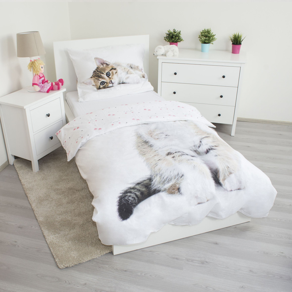 Gyönyörű 2 részes kiscicás ágyneműhuzat garnitúra, mely kiváló 100% pamut anyagának köszönhetően tökéletes pihenést biztosít, kicsiknek és nagyoknak egyaránt.