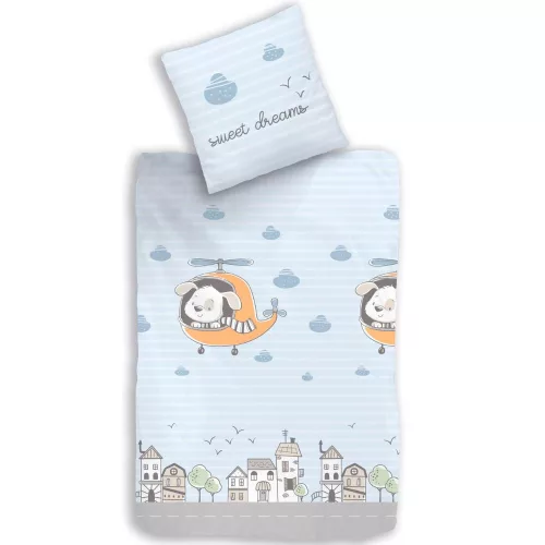 Ez a csodás ágynemű biztos kellemes alvást fog biztosítani a kicsik számára, színvilága csodás, nagyon kedves motívumok vannak rajta. Egyszerűen, mosógépben mosható, szín és fomatartó, 100% minőségi pamutból készült. 2 részes 100% pamut gyerek ágyneműhuzat garnitúra, mely egy 100x135cm-es paplanhuzatból és egy 40x60cm-es párnahuzatból áll. Ez az egészen kiskortól használható gyermekágynemű bőrbarát anyagának köszönhetően, kiváló választás minden gyerkőc számára, legyen szó akár otthoni, akár bölcsődei, vagy óvodai használatról. Szín és formatartó, egyszerűen, az ágyneműn található mosási etiketten szereplő adatok alapján, mosógépben mosható. Javasoljuk, hogy kifordítva, becipzározva mossátok.