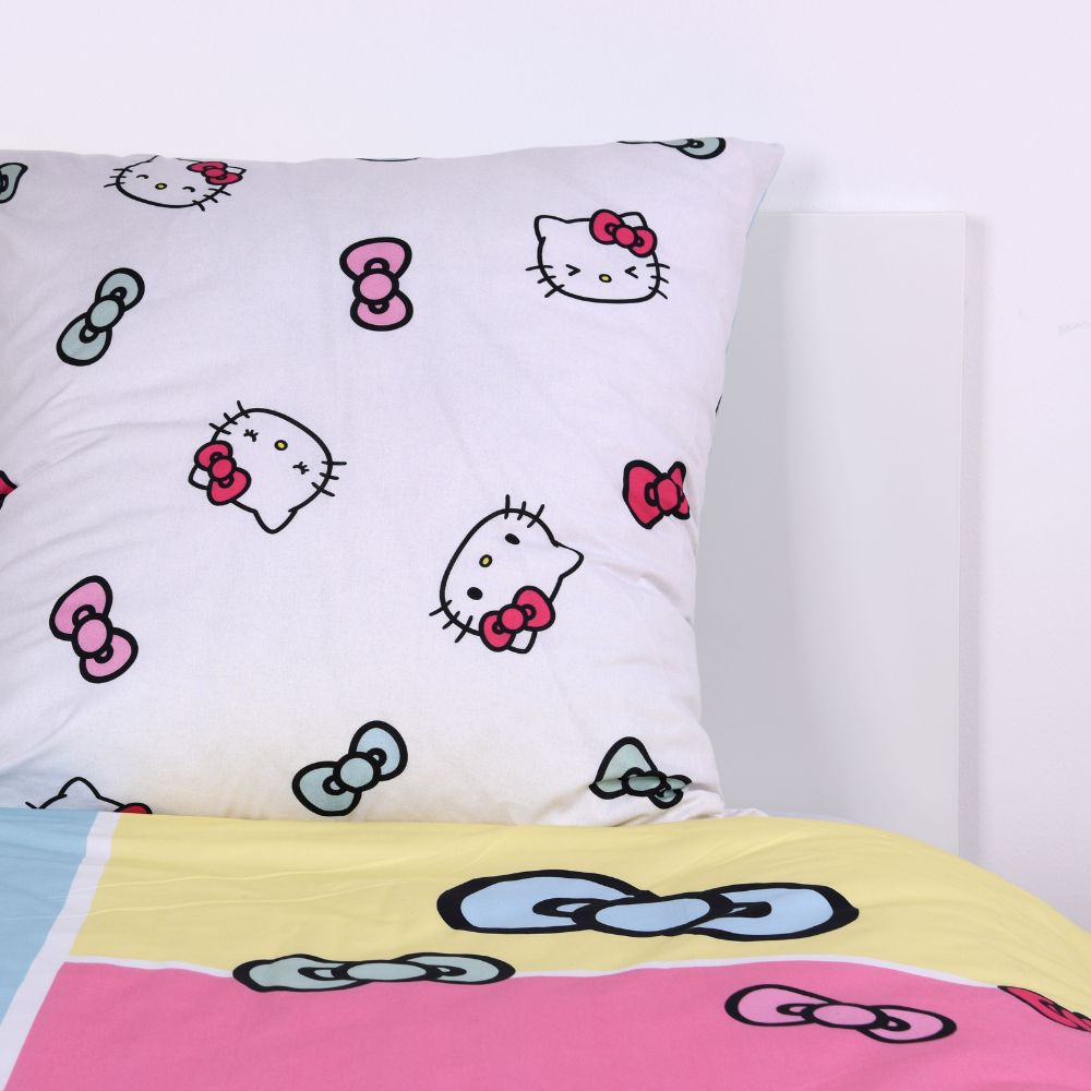 Édes álmok Hello Kitty-vel! Ez a színes pamut ágyneműhuzat garantáltan feldobja a gyerekszobát, és puha, kellemes alvást biztosít.