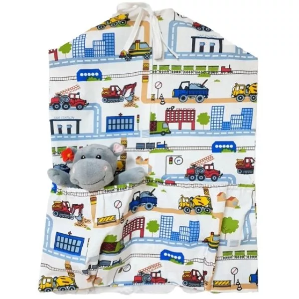 Szeretnéd, ha gyermeked dolgai mindig szép rendben lennének az óvodában? Egyszerű megoldást jelent erre a problémára ez az aranyos mintákkal ellátott ovis zsák. Könnyedén vállfára akasztható, praktikus, hogy a gyermek váltóruháját tisztán tudjuk tárolni. Eleje cipzáros, emellett található rajta két kisebb gumírozott zseb, a gyermek apróbb dolgainak. 100% pamutból készült, 40°C-on mosható, vasalható. Mérete: 45x60 cm.