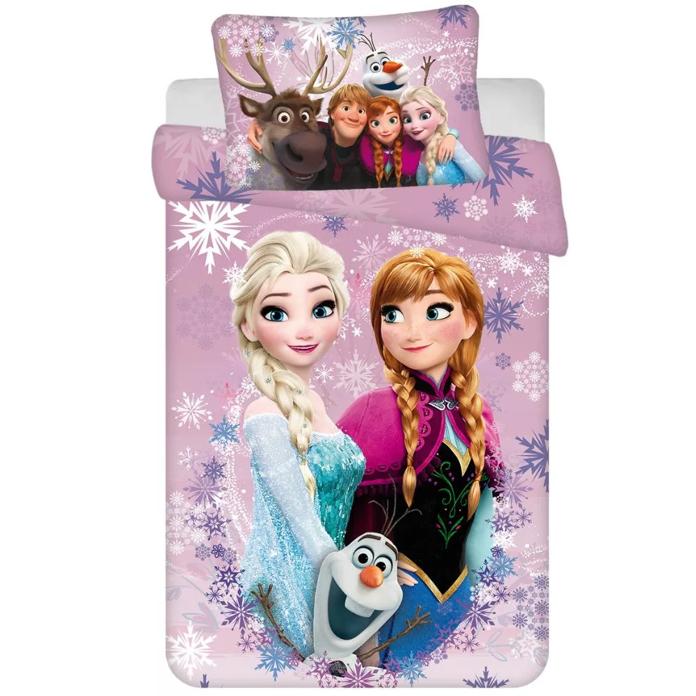 Gyönyörű Jégvarázsos 2 részes gyermek ágyneműhuzat garnitúra, ami kiváló minőségű 100% pamut anyagának köszönhetően kiváló választás kisgyermekek részére. Szín és formatartó.