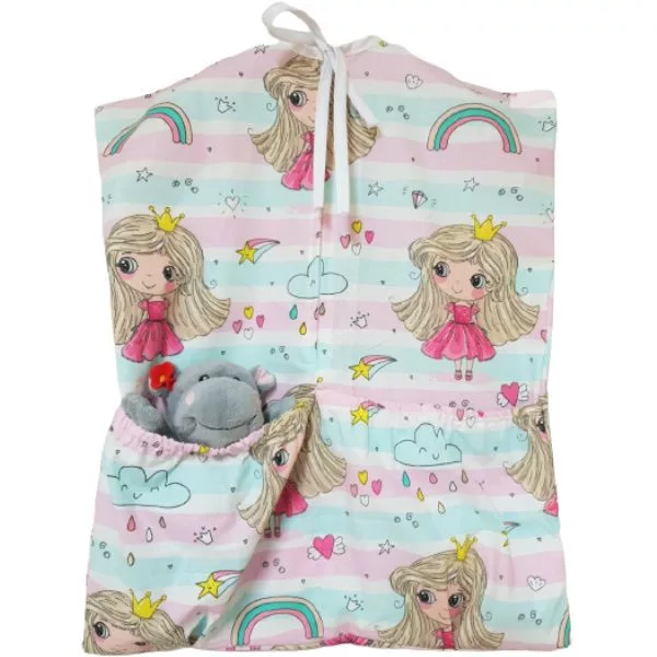Szeretnéd, ha gyermeked dolgai mindig szép rendben lennének az óvodában? Egyszerű megoldást jelent erre a problémára ez az aranyos mintákkal ellátott ovis zsák. Könnyedén vállfára akasztható, praktikus, hogy a gyermek váltóruháját tisztán tudjuk tárolni. Eleje cipzáros, emellett található rajta két kisebb gumírozott zseb, a gyermek apróbb dolgainak. 100% pamutból készült, 40°C-on mosható, vasalható. Mérete: 45x60 cm.