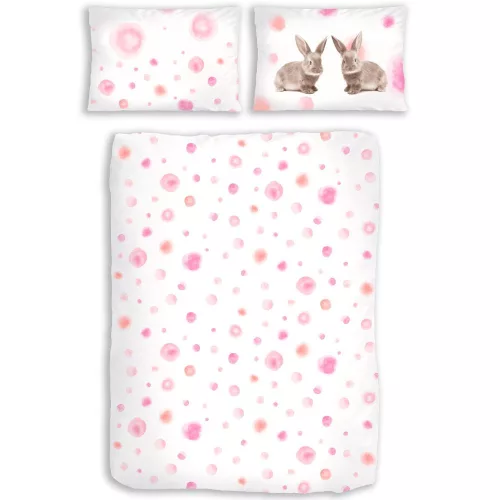 Ez a csodás ágynemű biztos kellemes alvást fog biztosítani a kicsik számára, színvilága csodás, nagyon kedves motívumok vannak rajta. Egyszerűen, mosógépben mosható, szín és fomatartó, 100% minőségi pamutból készült. 2 részes 100% pamut gyerek ágyneműhuzat garnitúra, mely egy 100x135cm-es paplanhuzatból és egy 40x60cm-es párnahuzatból áll. Ez az egészen kiskortól használható gyermekágynemű bőrbarát anyagának köszönhetően, kiváló választás minden gyerkőc számára, legyen szó akár otthoni, akár bölcsődei, vagy óvodai használatról. Szín és formatartó, egyszerűen, az ágyneműn található mosási etiketten szereplő adatok alapján, mosógépben mosható. Javasoljuk, hogy kifordítva, becipzározva mossátok.