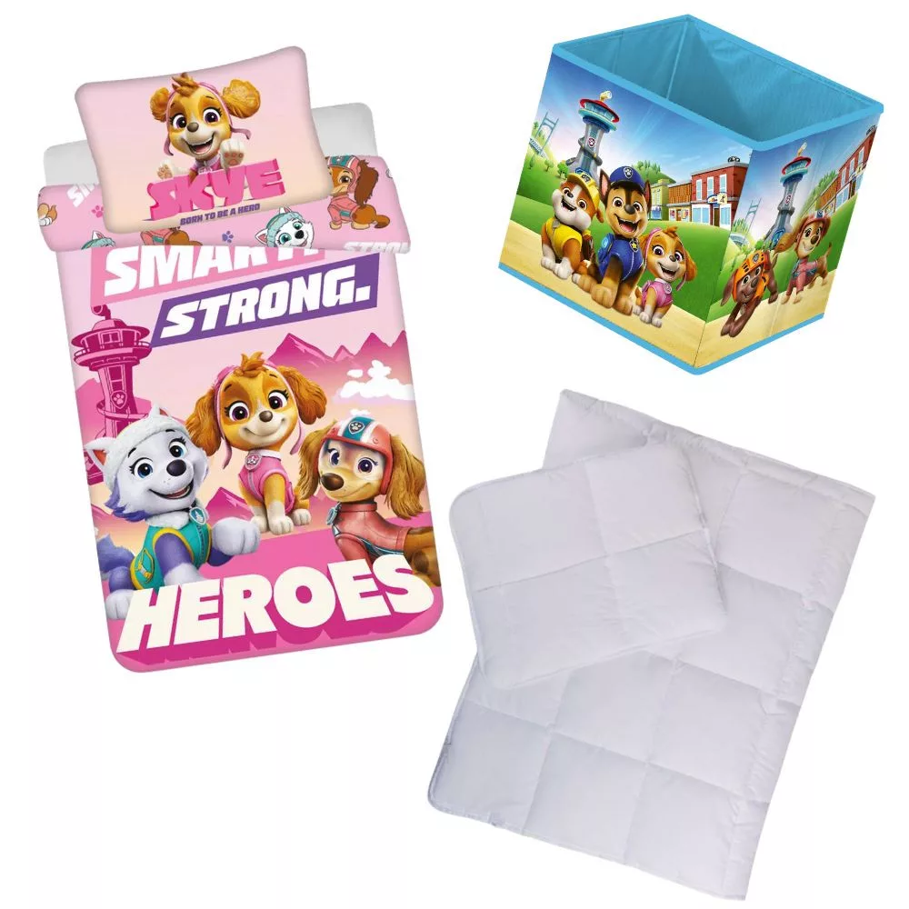 Mancs őrjárat mintás ovis ágyneműszett paplannal, párnával és 30×30×30 cm-es tárolódobozzal – tökéletes választás ovisoknak