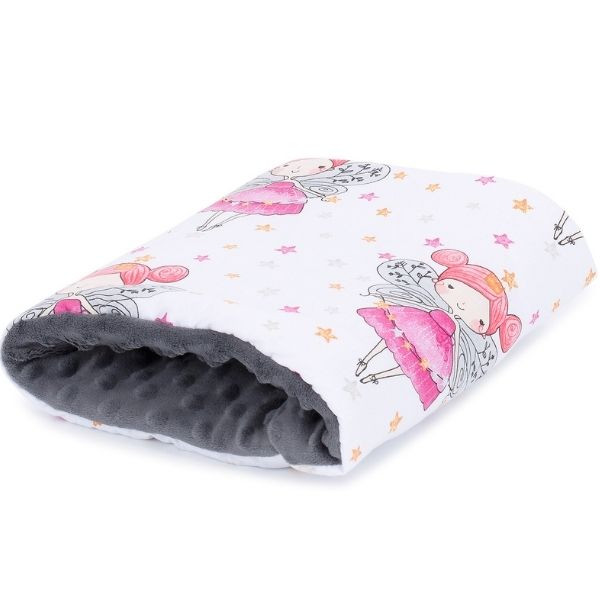 Kényelmes kétoldalas Minky karpárna, mely megkönnyíti a mindennapokat. Amikor elérkezik az etetési idő, akkor a párnát karodra húzva stabil, biztonságos helyzetbe fektetheted gyermeked. A karpárna egyik oldalán fehér alapon tündérek láthatóak. A másik oldala pedig szürke Minky plüss. A termék mérete körülbelül 23 cm így mindenhová magaddal viheted. Anyaga: egyik oldalon 100% pamut, másik oldalon puha minky plüss.