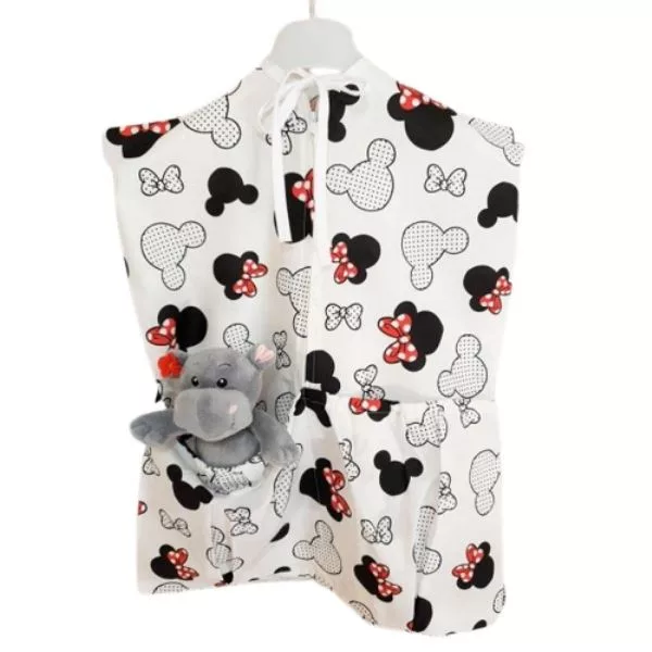 Szeretnéd, ha kislányod dolgai mindig szép rendben lennének az óvodában? Egyszerű megoldást jelent erre a problémára ez a Minny mintás ovis zsák. Könnyedén vállvára akasztható, praktikus, hogy a gyermek váltóruháját tisztán tudjuk tárolni. Eleje cipzáros, emellett található rajta két kisebb gumírozott zseb, a gyermek apróbb dolgainak. 100% pamutból készült, 40°C-on mosható, vasalható. Mérete: 45x60 cm.