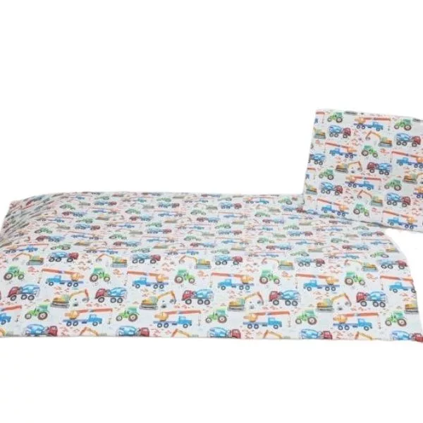 Nagyon cuki ovis ágyneműhuzat garnitúra, amely biztosan nagyon fog tetszeni a kisfiadnak. A huzaton nagyon sok aranyos munkagépet lehet látni. Ha a gyermeked épp a bölcsibe vagy az oviba készül, akkor ez az ágynemű tökéletes választás lesz neki. Mérete: a paplanhuzat: 90x140 cm a párnahuzat: 40x50 cm. Az ágynemű anyaga 100% kiváló minőségű pamut, mely bőrbarát, légáteresztő, strapabíró, többszöri mosás után is szín- és formatartó. Záródása: Rejtett cipzáras.