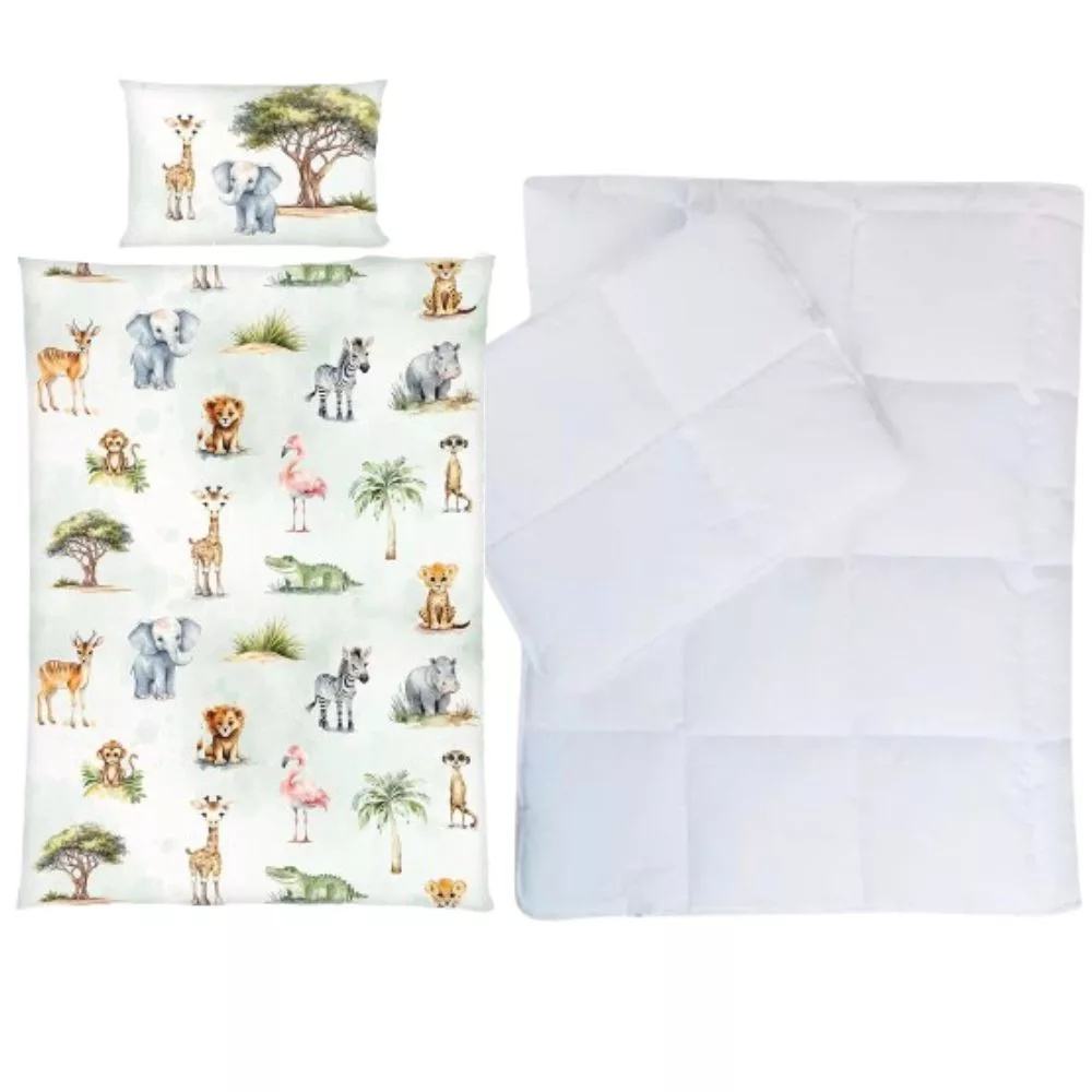 2 részes 100% minőségi pamut-flanelből készült Állatos, gyerek ágyneműhuzat garnitúra, mely egy 100x135cm-es paplanhuzatból és egy 40x60cm-es párnahuzatból áll. Ez a gyermekágynemű bőrbarát anyagának köszönhetően, kiváló választás minden gyerkőc számára. Szín és formatartó, egyszerűen, az ágyneműn található mosási etiketten szereplő adatok alapján, mosógépben mosható. Javasoljuk, hogy kifordítva, becipzározva mossátok.