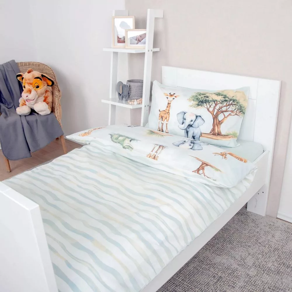 Gyönyörű 2 részes Zsiráfos ágyneműhuzat garnitúra, mely kiváló 100% pamut anyagának köszönhetően tökéletes pihenést biztosít, kicsiknek és nagyoknak egyaránt.
