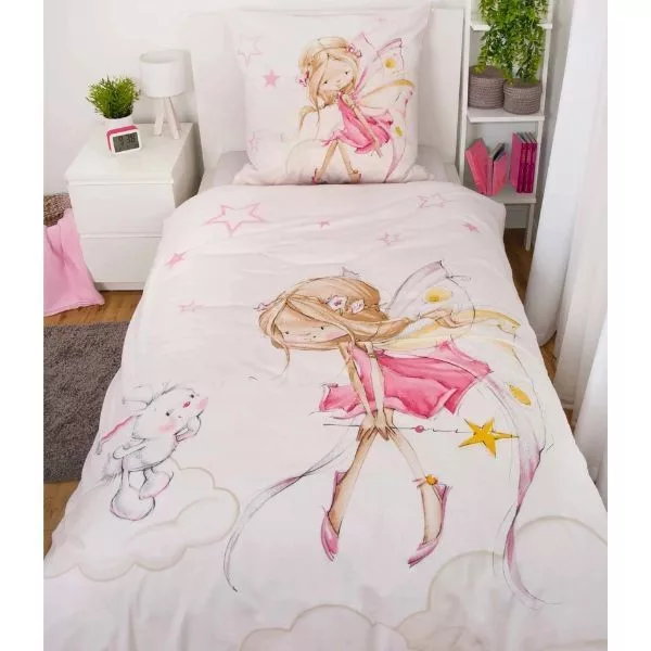 Nagyon aranyos tündérkés 2 részes gyermek ágyneműhuzat garnitúra, ami kiváló minőségű 100% pamut anyagának köszönhetően kiváló választás minden gyermekek részére. Szín és formatartó.