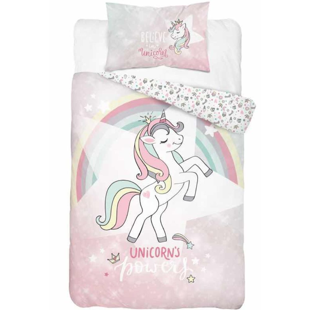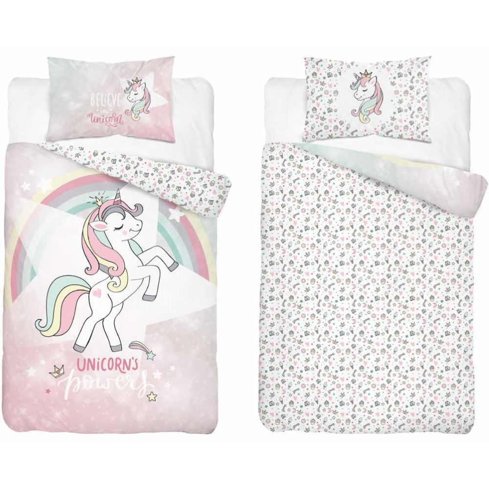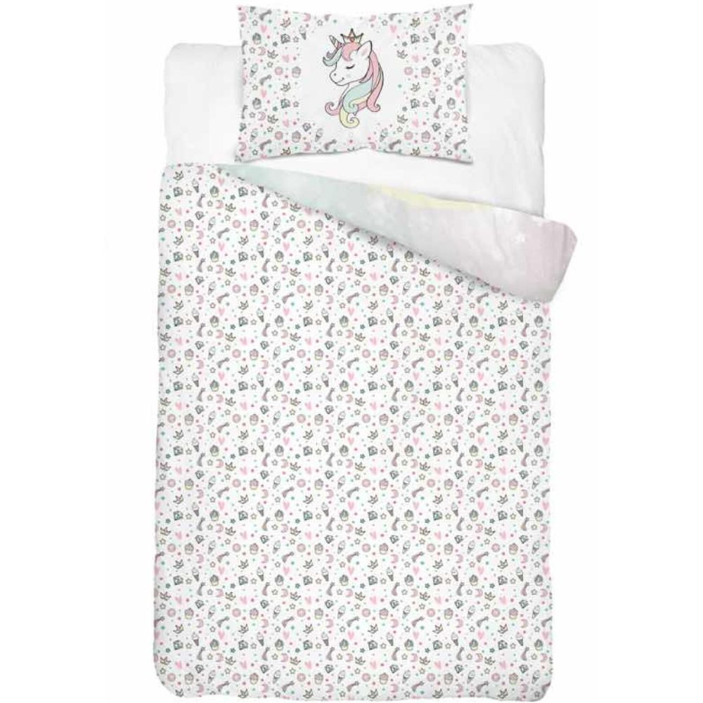 Nagyon aranyos unikornisos 2 részes gyermek ágyneműhuzat garnitúra, ami kiváló minőségű 100% pamut anyagának köszönhetően kiváló választás kisgyermekek részére. Szín és formatartó.