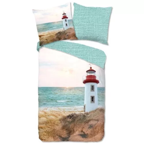 Nagyon szép ágyneműhuzat garnitúra, melyen egy világítótorony látható a tengerparton. A paplanhuzat 100% kiváló minőségű pamutból készült, mely bőrbarát, strapabíró, és többszöri mosás után is szín- és formatartó. A garnitúra 2 részes. A paplanhuzat mérete: 135x200 cm, a párnahuzat: 80x80 cm.