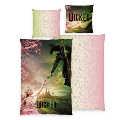 Lépj be a Wicked musical varázslatos világába ezzel a gyönyörű ágyneműszettel, amely Elphaba és Glinda ikonikus jelenetét ábrázolja. A dizájn a híres Broadway-musical és a 2024-es film látványvilágából merít inspirációt, így tökéletes választás rajongók és varázslatos történetek kedvelői számára.