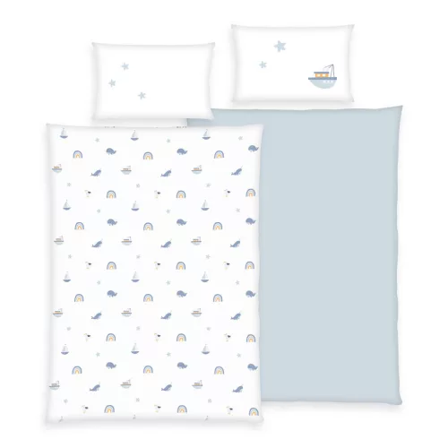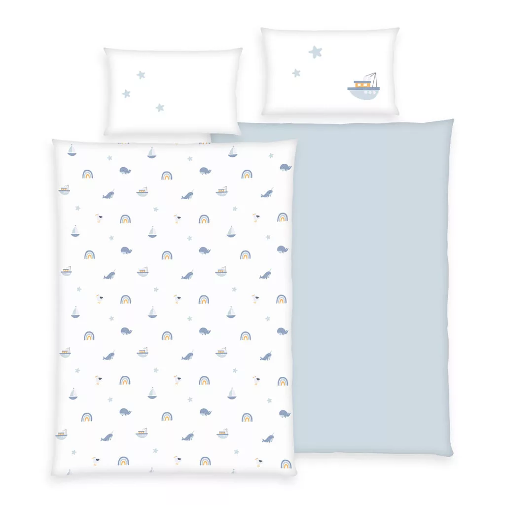 Hajós , bálnás flanel ovis ágynemű 100x135+40x60 cm